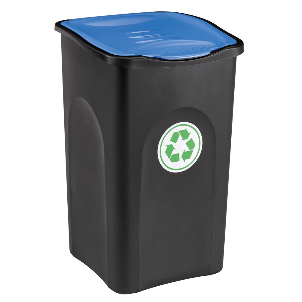 Kosh mbeturinash për ambient të jashtëm, plastik, zezë (kapak blu), 37x37xH56 cm, 50 lt