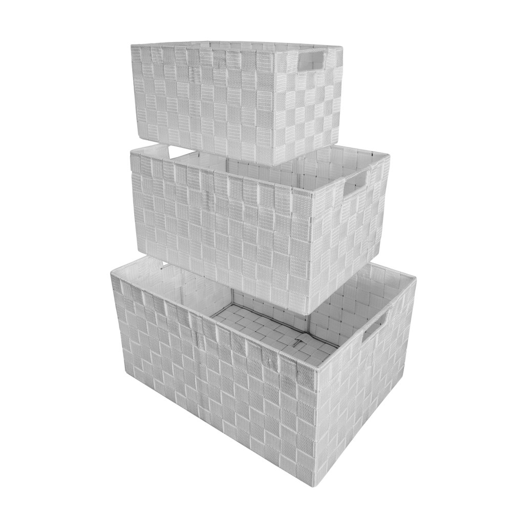 Qoftë si një pjesë dekorative ose si pjesë e magazinimit dhe organizimit tuaj, kjo shportë argëtuese është e sigurtë se do të bëhet një pjesë e preferuar e dekorit të shtëpis tuaj. Shporta punim dore nailoni inspiron ta keni pranë divanit, kolltukut për të ruajtur revista, gazeta dhe më shumë. Porosit tuajën sot. Përmasat: 40x30xH20 cm; 35x25xH18 cm; 30x20xH16 cm