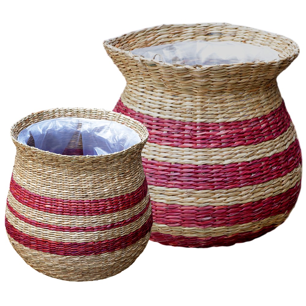Seti i koshave për lule ofron një zgjidhje elegante dhe praktike për prezantimin dhe mbajtjen e luleve në shtëpi ose në ambiente të tjera të brendshme. Koshat janë krijuar nga material kashte e cila është një zgjedhje e shkëlqyer për ambiente të brendshme për shkak të rezistencës së saj ndaj ujit dhe lehtësisë së pastrimit. Forma e tyre dhe dizajni i thjeshtë e bëjnë atë që të përshtatet me ambjente të ndryshme.