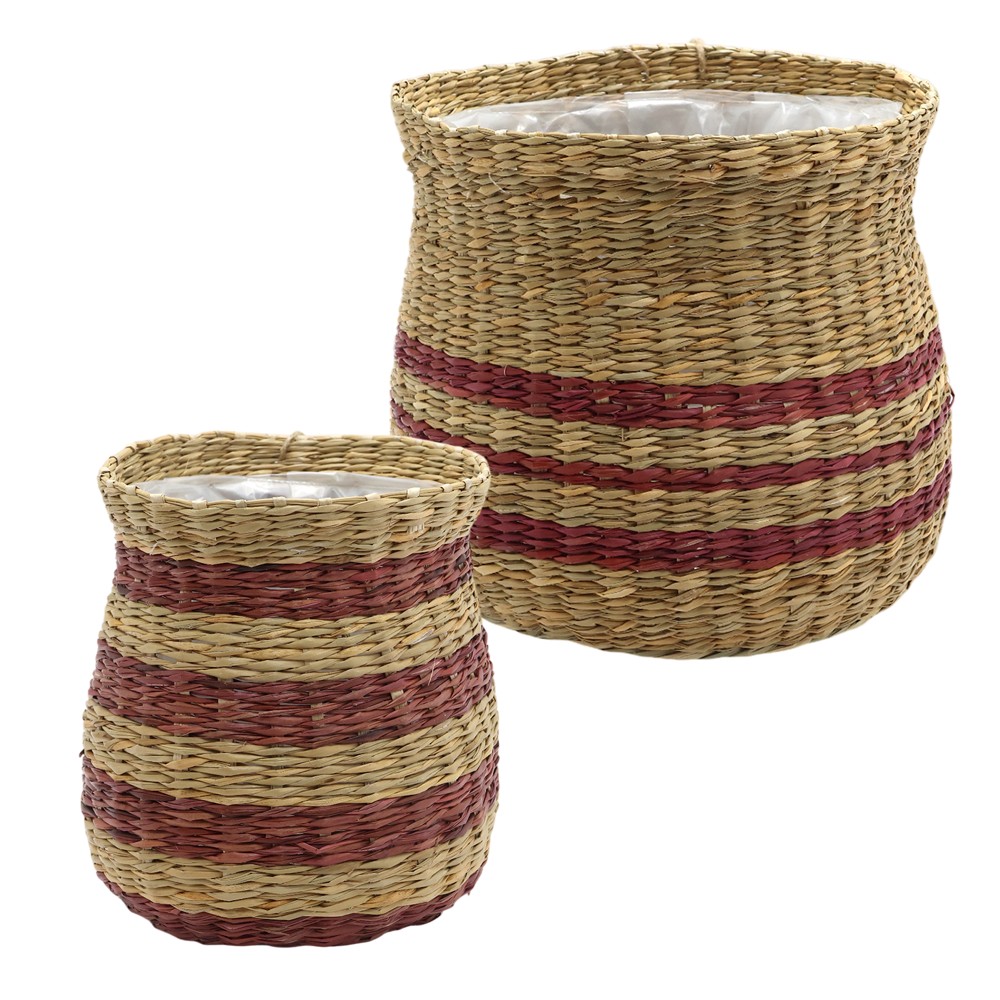 Kosh për lule, set 2 copë, kashtë, Natyrale/Kafe