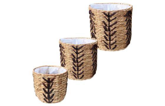 Kosh për lule, set 3 copë, kashtë, Natyrale