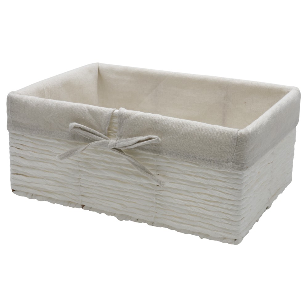 Koshi i rrobave i punuar me material kashte dhe me veshje tekstili në pjesën e brendshme, është një produkt i cili ju nevojitet patjetër në stilin tuaj të arredimit të tualetit. Vjen në përmasat 35x24xH15 cm, dhe mund ta përdorni si për organizimin e sendeve të ndryshme ashtu edhe për rrobat e papastra. Përmasat e saj e bëjnë atë të jetë kompakt dhe të lehtë në përdorim. Ngjyra e bardhë ofron një ndjesi pastërtie dhe freskie e cila do të duket gjithmonë e rregullt dhe e pastër. Aksesori ideal si për organizim ashtu edhe për mbajtjen e rrobave në tualete ose edhe lavanderi.