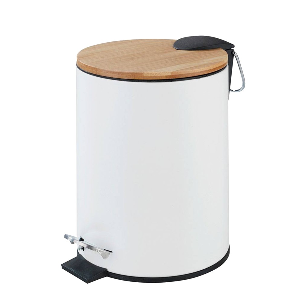 Toilet basket, 3L, metal/bamboo, white, 16.8xH24cm