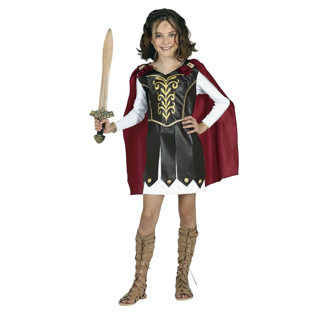 Kostum Gladiator për fëmijë, prej materiali poliestre, në ngjyrë mikse. Materiali përbërës është i butë në prekje dhe nuk shkakton irritim në lëkurë. Ky produkt është i përshtatshëm për përdorim nga fëmijë të moshës 10-12 vjec me gjatësi 142 cm deri në 148 cm, bust 73-76 cm, beli 64-65 cm, ijet 75-78 cm.