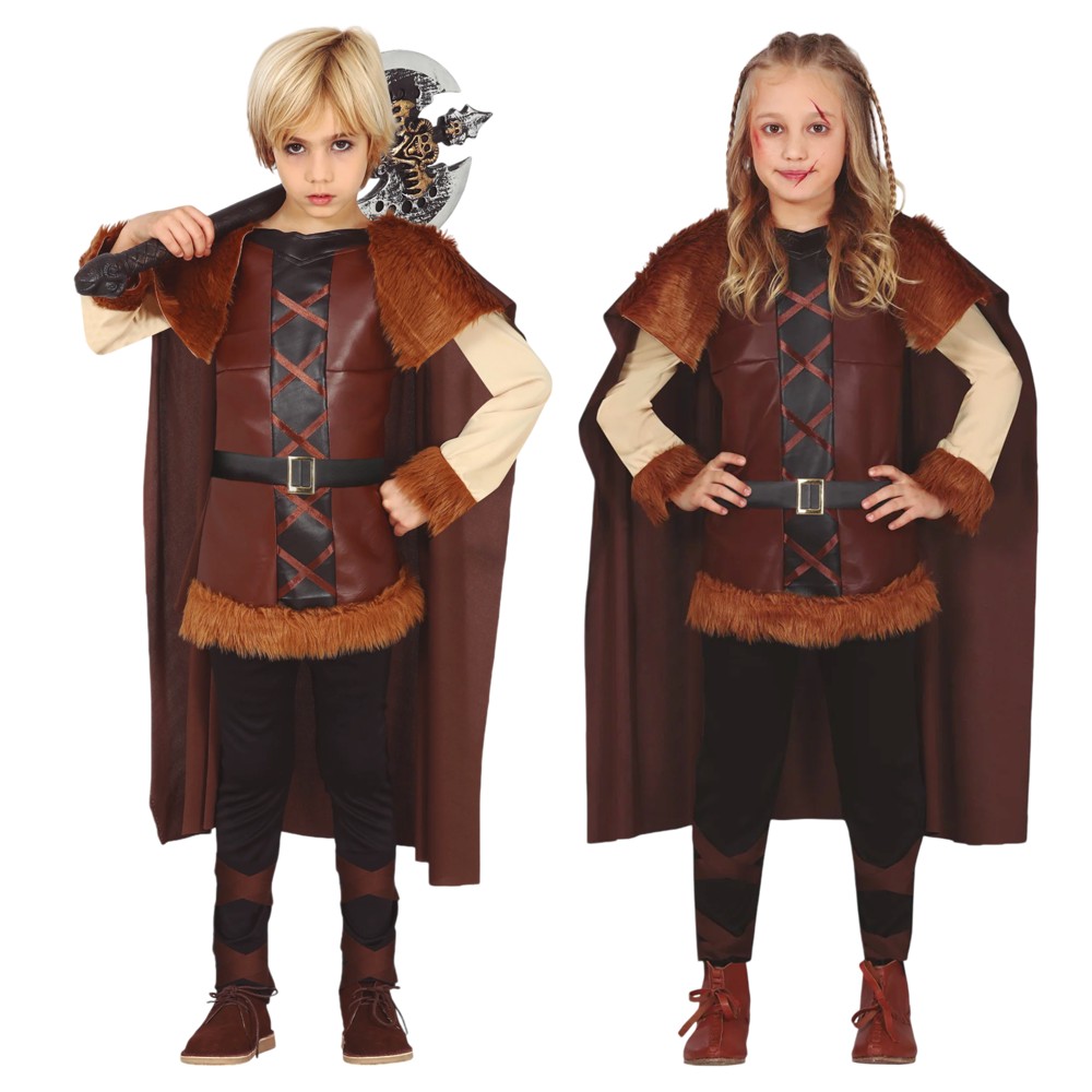 Kostum Viking për fëmijë, prej materiali poliestre, në ngjyrë mikse. Materiali përbërës është i butë në prekje dhe nuk shkakton irritim në lëkurë. Ky produkt është i përshtatshëm për përdorim nga fëmijë të moshës 7-9 vjec me gjatësi 125 cm deri në 135 cm, bust 67-70 cm, beli 59-60 cm, ijet 67-72 cm.