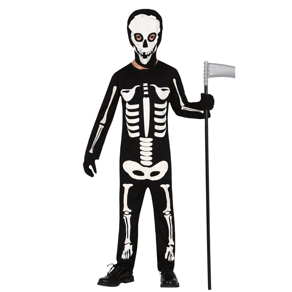 Kostum skeleton për fëmijë, prej materiali poliestre, në ngjyrë të zezë. Materiali përbërës është i butë në prekje dhe nuk shkakton irritim në lëkurë. Ky produkt është i përshtatshëm për përdorim nga fëmijë të moshës 10-12 vjec me gjatësi 142 cm deri në 148 cm .