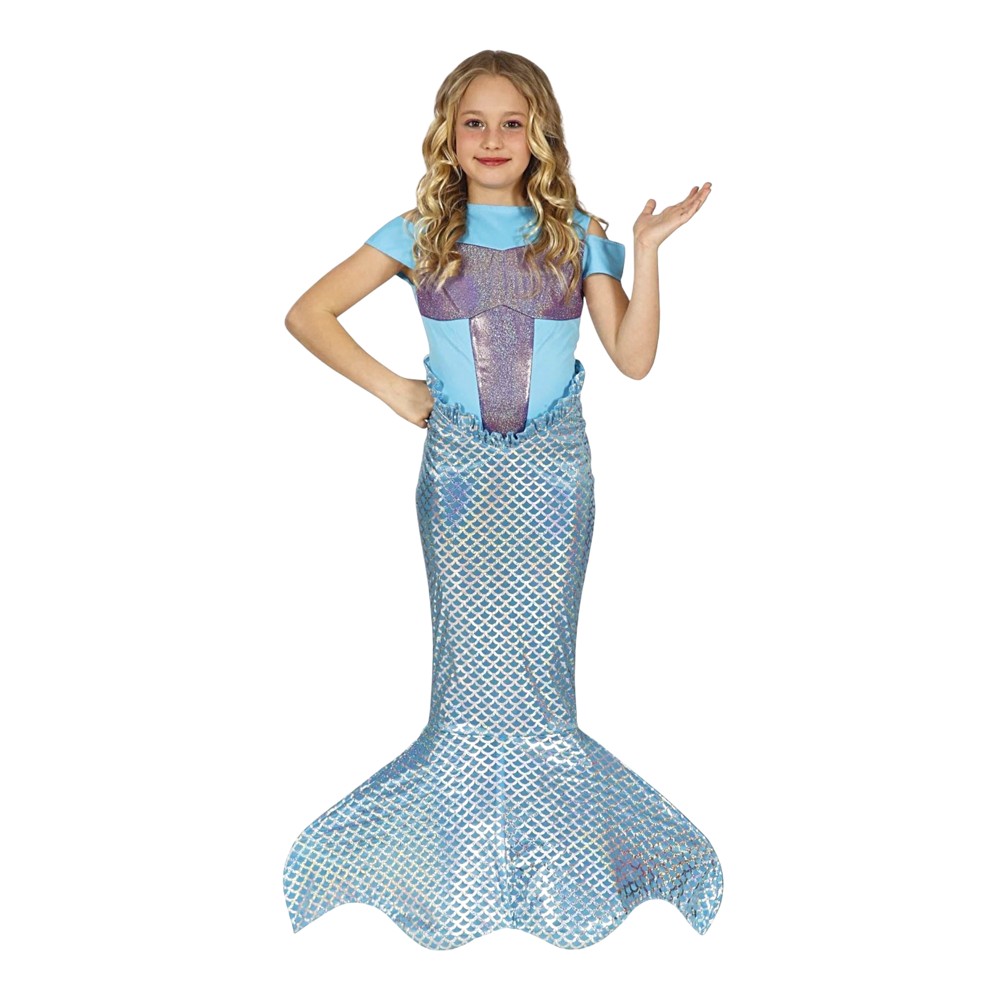 Kostum Mermaid për fëmijë, prej materiali poliestre, në ngjyrë mikse. Materiali përbërës është i butë në prekje dhe nuk shkakton irritim në lëkurë. Ky produkt është i përshtatshëm për përdorim nga fëmijë të moshës 5-6 vjec me gjatësi 110 cm deri në 115 cm, bust 59-62 cm, beli 55-57 cm, ijet 62-64 cm.