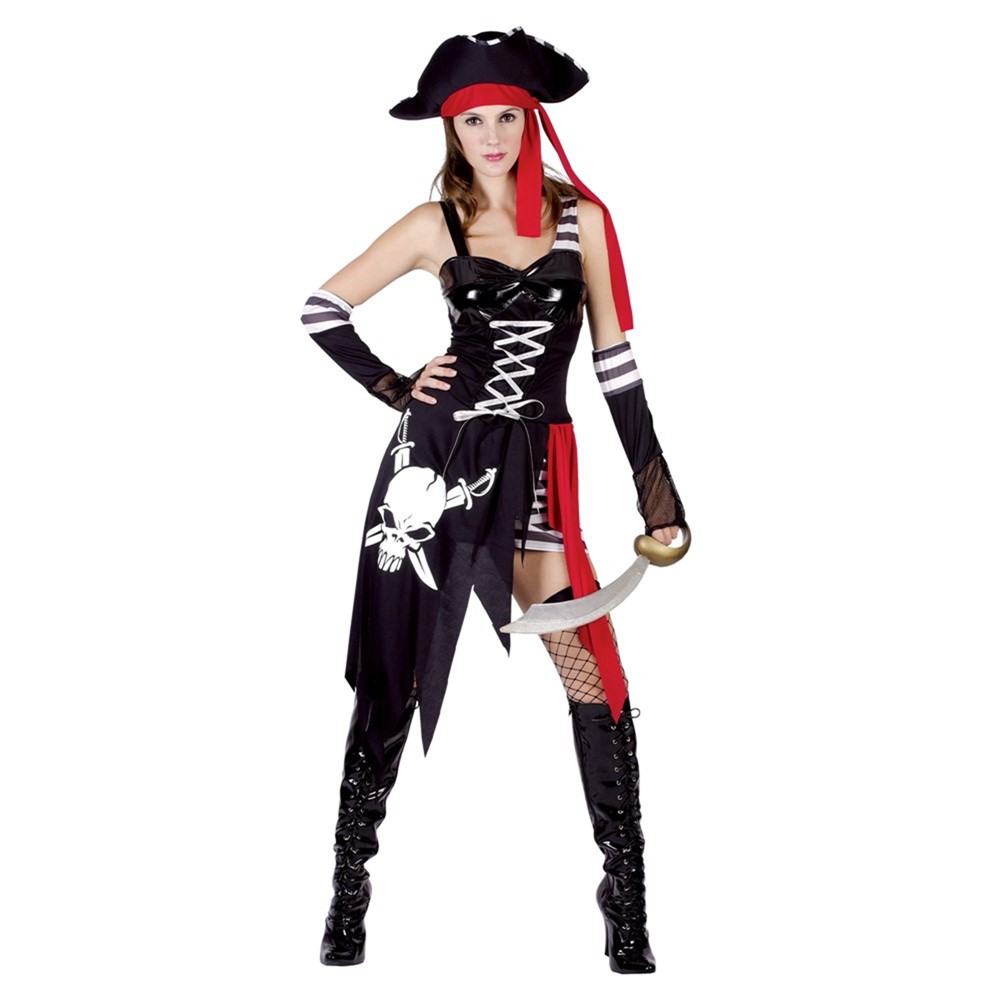 Ky kostum prej pirateje me cilësi të lartë përmban kapele, fustan ne ngjyre të kuqe dhe të zeza. Nëse zgjedh këtë dizajn të kostumit të piratit, do të jeni zonja e parë pirat në festën e halloweenit.