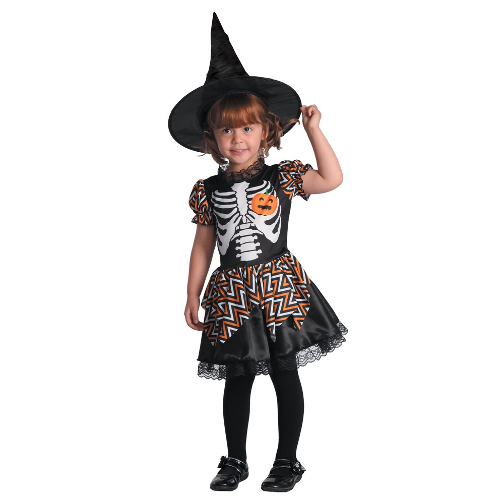 Ky fustan prej shtrige skeletoni për femije me nje dizanj tepër të bukur përbëhet nga një fustan dhe kapele. Kostumi pjesën e fundit e ka në formë tutuje me tyl të zi dhe pjesën e bustit me dizajn skeleti të printuar.
