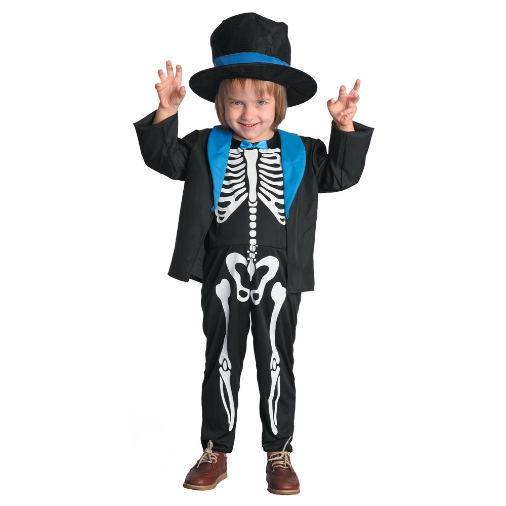 Kostum skeletoni për fëmijë, është një veshje e përshtatshme për ata që kanë frikë nga ngjyrat e errëta. Seti përmban: xhaketë, Xhampsuit, kapele. Veshja ka të printuar dhe skeletin sikurse e jep dhe në foton e veshjes.