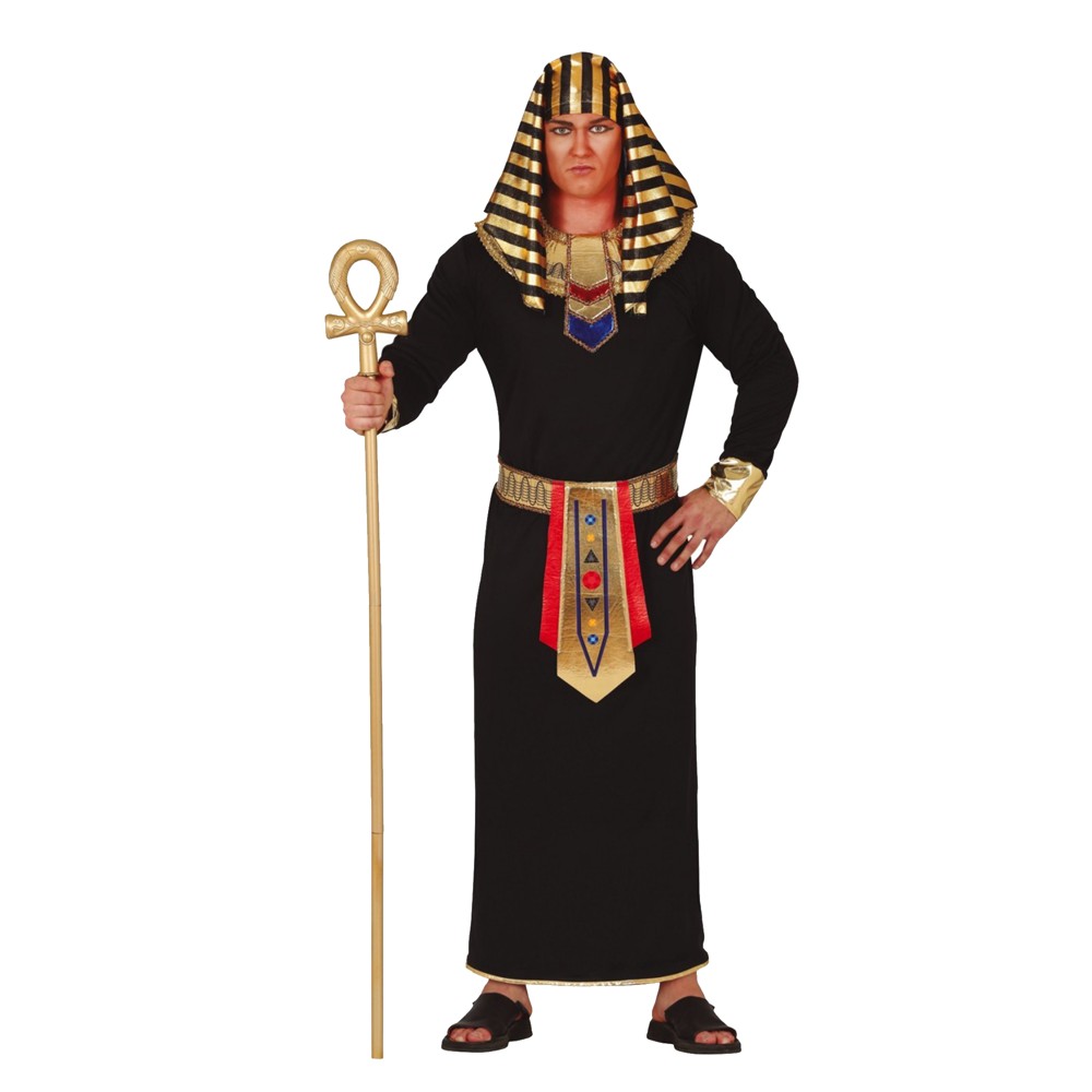 Kostum Pharaoh për të rritur, prej materiali poliestre, në ngjyrë të zezë, masa 48/50. Materiali përbërës është i butë në prekje dhe nuk shkakton irritim në lëkurë. Ky produkt është i përshtatshëm për përdorim në festa si Halloween, karnavale apo festa të tjera me kostume.