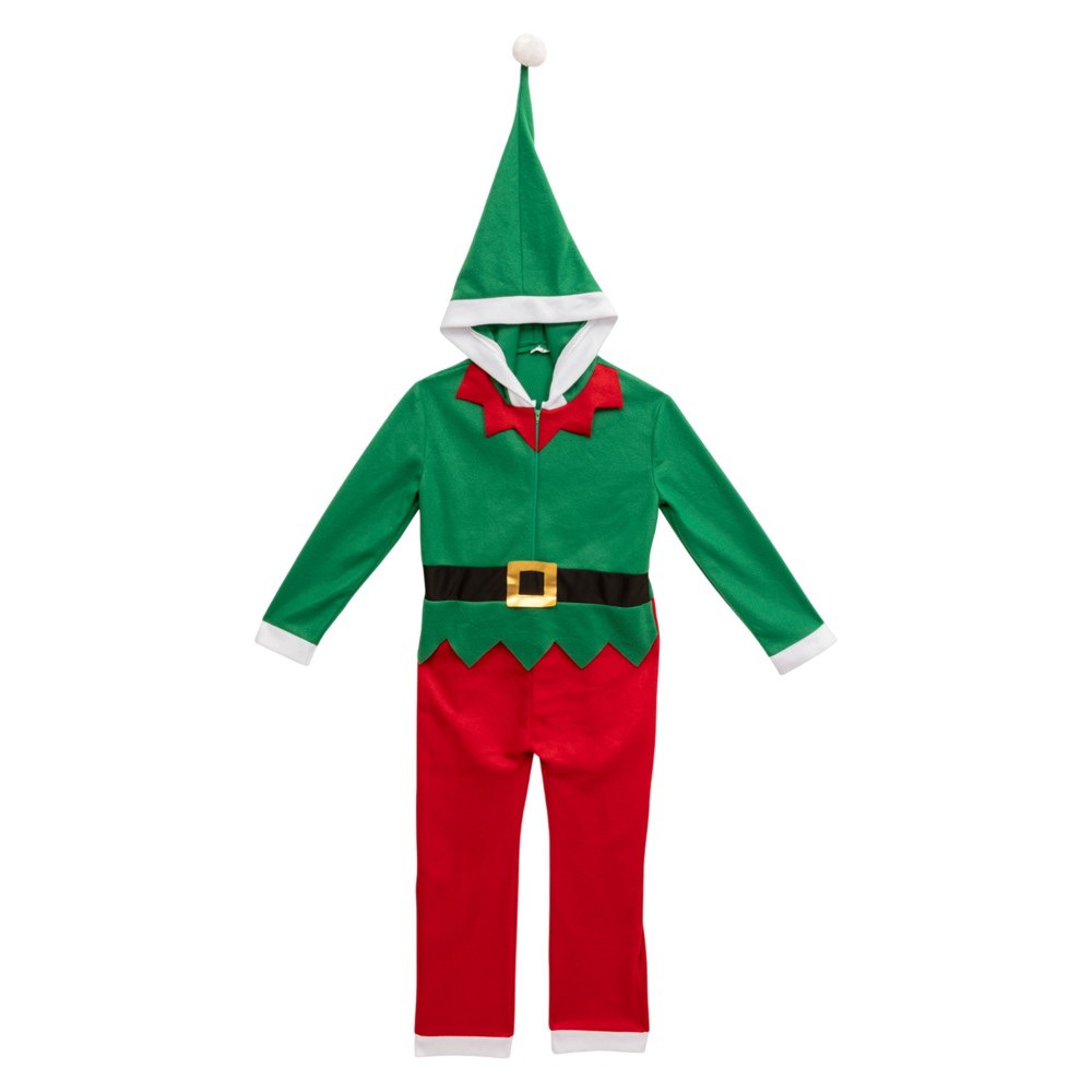 Kostum Santa per femije, ngjyre e kuqe me jeshile, masa universale