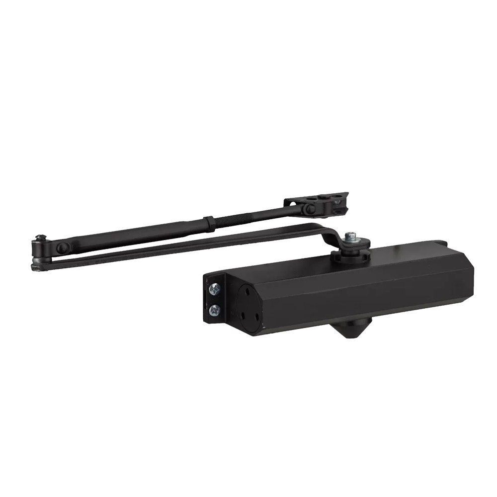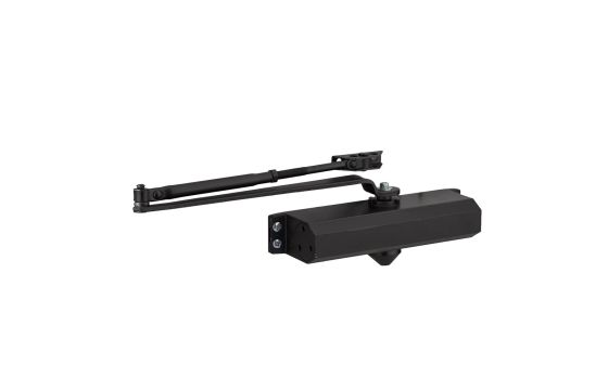 Hydraulic door closer. Can be mounted on the right or left. Adjustment of closing speed and final stop is done with a screw.
