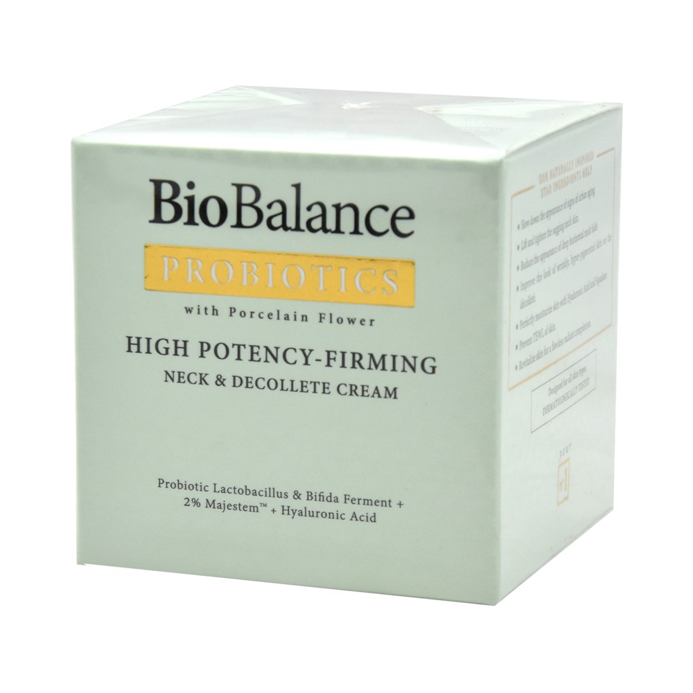 Krem rigjenerues për trajtimin e lëkurës së qafës dhe dekoltesë, High Potency-Firming, Probiotics, Bio Balance, qelq, 50 ml, e gjelbër pastel, 1 copë