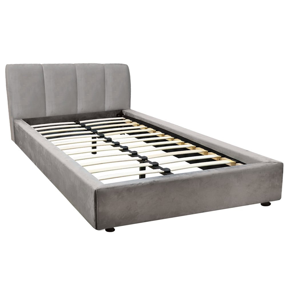 Krevat dopjo, tapiceri velevet, këmbë plastike, gri e lehtë, 180x200 cm