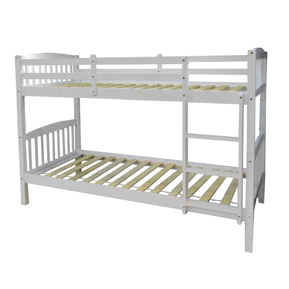 Bunk bed, pine wood, white, 197.5x97xH145 cm