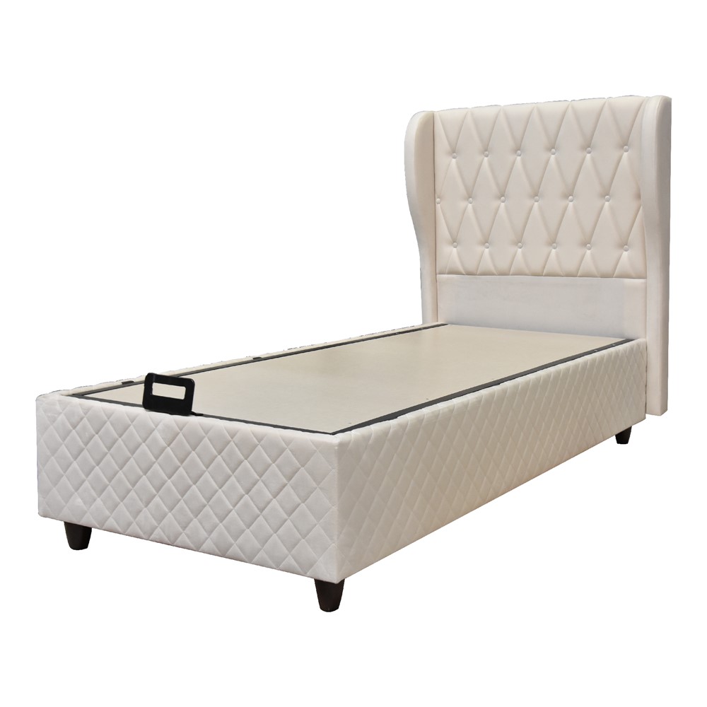 Po vlerësoni:Krevat, tek, vend magazinimi, Spacious, strukturë melamine/metali, tapiceri tekstili, e bardhë, 90x200xH118 cm