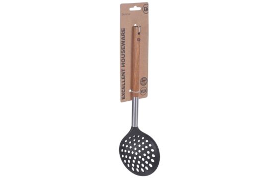 Një mjet i domosdoshëm për çdo kuzhinë, kjo kullesë është e përkryer për kullimin e ushqimit dhe derdhjen e lëngjeve me lehtësi. I përbërë nga najloni i qëndrueshëm dhe rezistent ndaj nxehtësisë, ai siguron higjienë dhe përdorim afatgjatë. Doreza kombinon metalin e fortë me dru natyral akacie, duke siguruar qëndrueshmëri dhe një prekje të ngrohtë estetike. Një mjet i domosdoshëm për gatimin e përditshëm, duke kombinuar funksionin me stilin në çdo detaj.