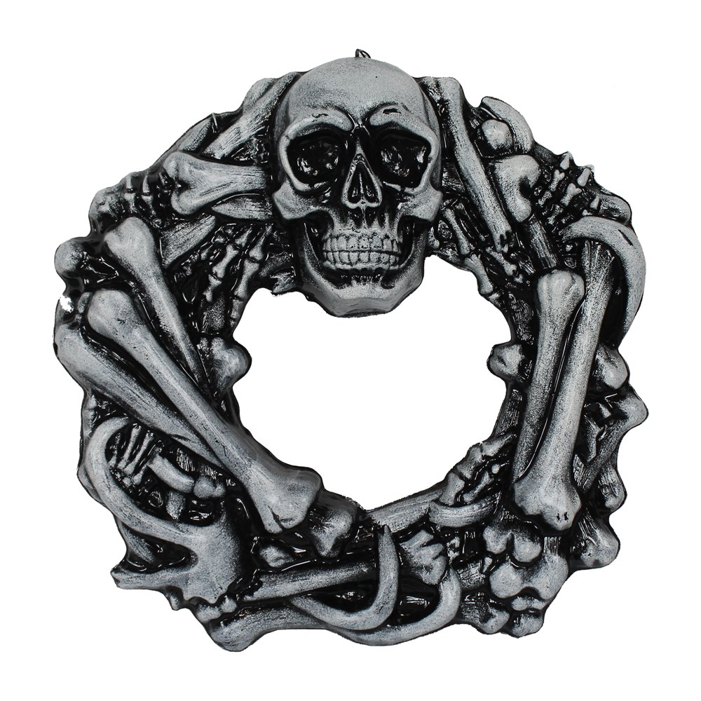 Jeni ngacmuar për këtë sezon drithërues? Kjo kurorë lozonjare por me stil është vetëm diçka për të shtuar pak Halloween në derën tuaj të përparme. Baza ne qender ka koke skeleti e gershtuar me kocka te ndryshme.