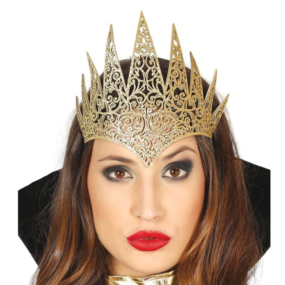 Kurorë mbretëreshe, prej materiali plastik, në ngjyrë të artë. Përdoret si aksesor për veshje të ndryshme Halloween-i apo karnavalesh.