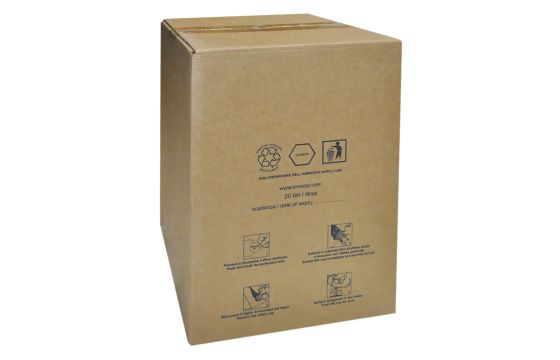 Kuti ambalazhimi kartoni 20 litra për qesen e aluminit të verës. Përdoret me qesen e aluminit, të cilat, pasi mbushen me verë, vendosen brenda kutisë së kartonit për mbrojtjen ndaj goditjeve.