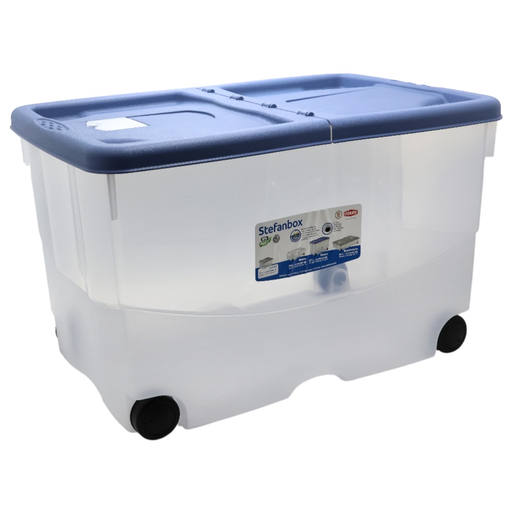 Kuti magazinimi me rrota, plastike, transparente/ blu, 57 lt, 60x40xH36 cm