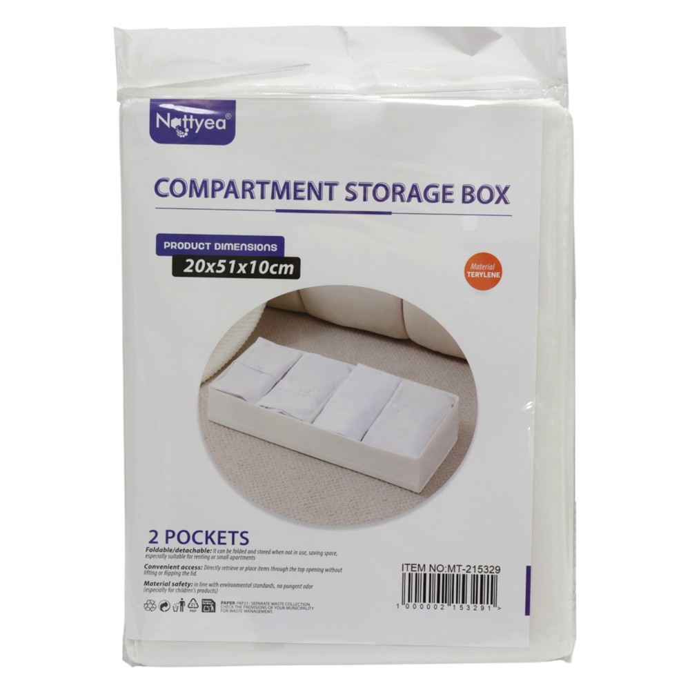 Kuti magazinimi e bërë nga poliestër e qëndrueshme në ngjyrë të bardhë, me dimensione 20x51x10 cm. Ideale për organizimin dhe ruajtjen e sendeve të vogla si aksesorë, dokumente apo sende personale. Materiali i lehtë dhe rezistent e bën këtë kuti një zgjidhje praktike dhe funksionale për çdo hapësirë në shtëpi apo zyrë.