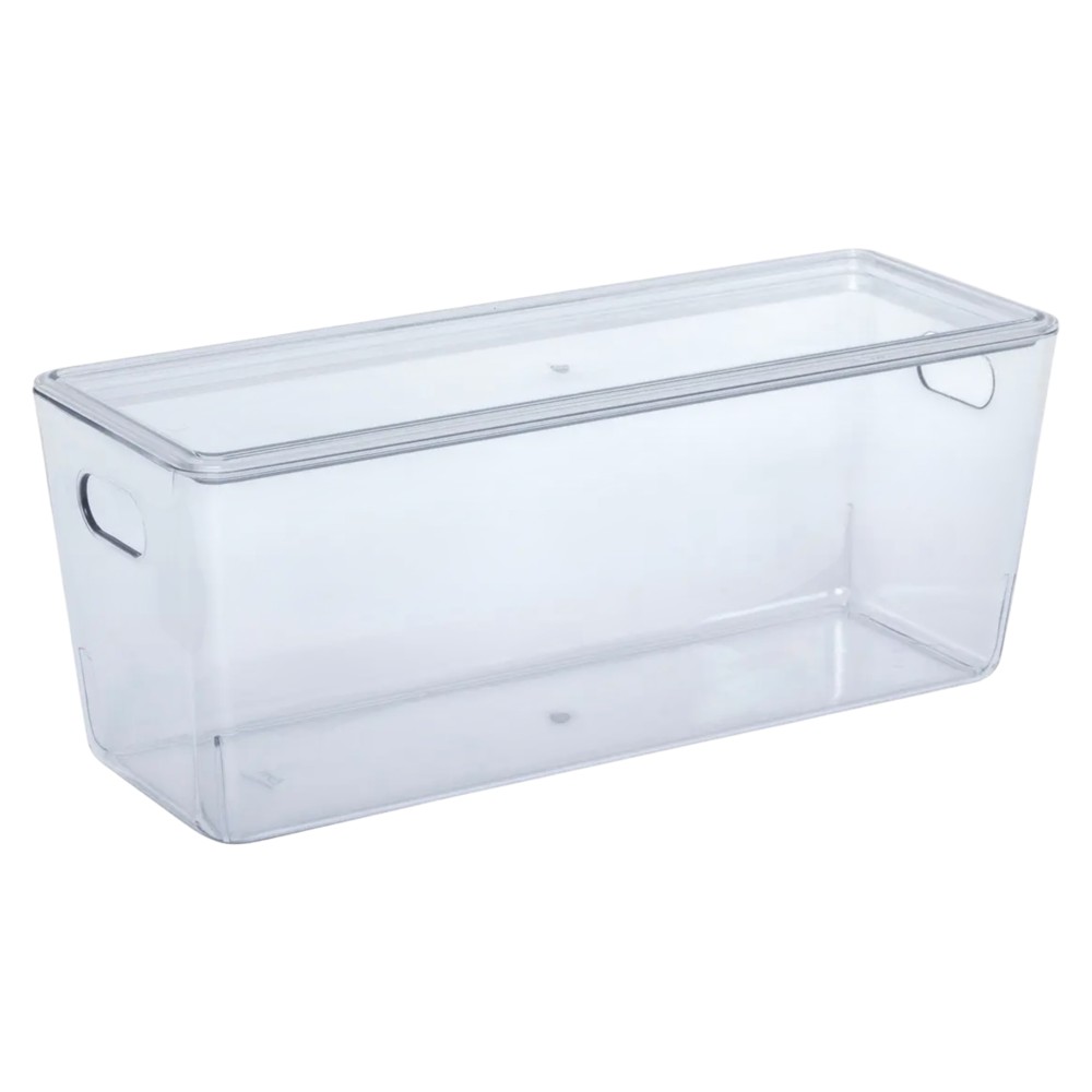 Kutia e magazinimit me kapak ''Selena'' prodhuar nga 5FIVE Simply Smart në material plastik do ju ndihmojë të organizoni sendet tuaja. Materiali transparent ju ofron mundësinë e aksesit të shpejtë në sendet e depozituara. Dorezat ofrojnë prakticitet në transportim. Me kapacitet prej 5 litrash mos hezitoni ta bëni tuajin së bashku me linjën e kutive ''Selena'' në përmasa të ndrryshme. Përmasat, lartësia : 13 cm, gjatësia : 35 cm, gjerësia : 14 cm.