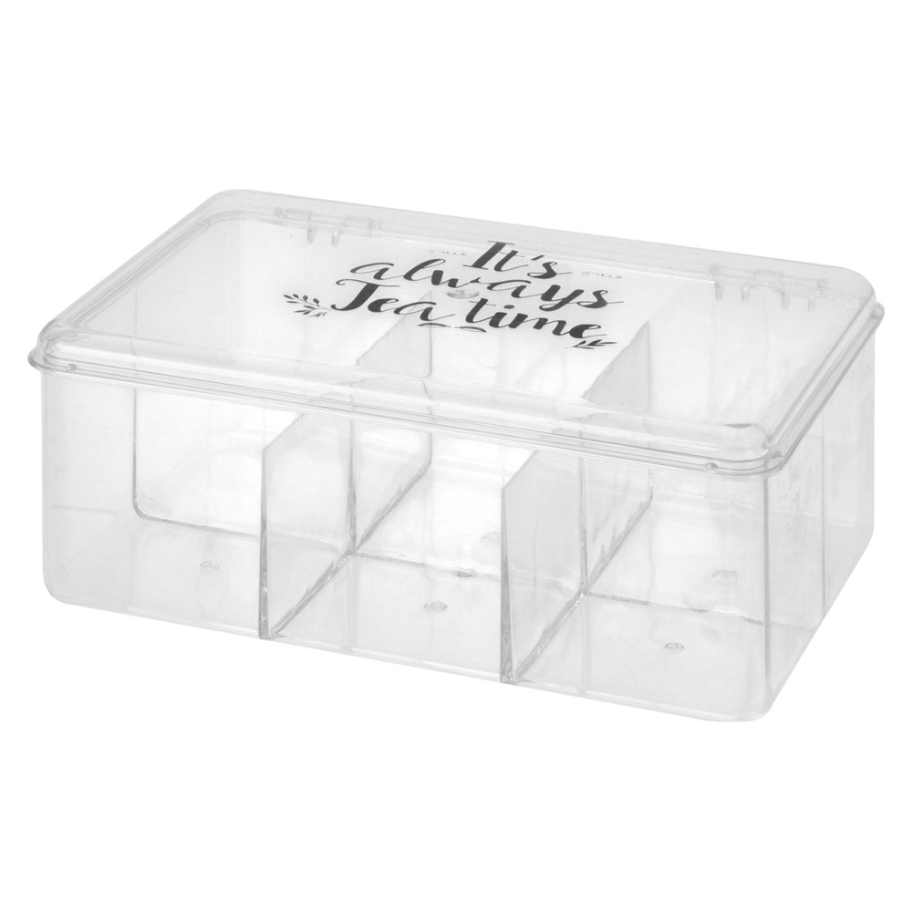 Kjo kuti çaji është bërë nga një material i lehtë, por i qëndrueshëm. Ka një mbyllje të ngushtë që siguron rehati në përdorim dhe zgjat freskinë e çajrave të ruajtur. Falë ndarjeve, është e lehtë të organizoni qeset e çajit me shije të ndryshme. E dobishme në çdo shtëpi. Mund të merret me vete në një udhëtim, kamping ose piknik për të pasur gjithmonë çajrat tuaj të preferuar. Kutia ka përmasa 21,5x 15x 8,5 cm dhe ka 6 ndarje për çaj brenda. Ngjyra transparente ju lejon të kontrolloni me lehtësi përmbajtjen pa pasur nevojë ta hapni atë. Ai është i pajisur me një kapak që siguron një mbyllje të ngushtë dhe mbron përmbajtjen nga lagështia, drita dhe faktorë të tjerë të jashtëm që mund të ndikojnë në cilësinë e çajit. Ena ka 6 ndarje, të cilat lejojnë ruajtjen e llojeve të ndryshme të çajit veçmas, duke parandaluar përzierjen e shijeve. Ndihmon në ruajtjen e rendit në kuzhinë.