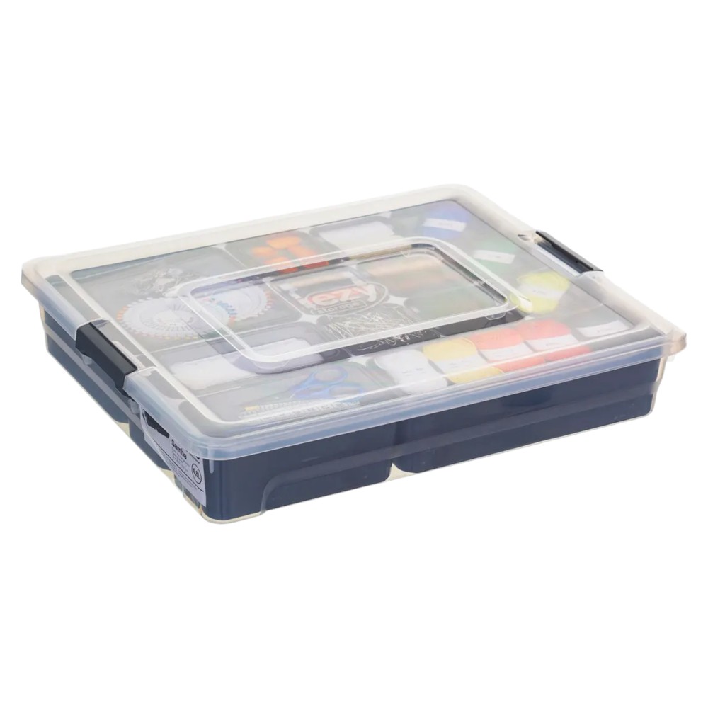 Keni nevojë të organizoni në mënyrë praktike sendet tuaja dhe të eliminoni rrëmujat? Kutia e organizimit ''Samba'' e ideuar nga 5FIVE Simply Smart ju vjen në ndihmë. Prodhuar në material polipropilen në ngjyrë transparente dhe organizues gri. Kjo kuti është e përbërë nga 1 kontenier transparent, 1 kapak me mbyllje me kapëse, 3 kontenier të brendshëm të gjatë, 9 mini konteniera të brëndshëm, 1 maxi kontenier. Ky produkt ka një kapacitet prej 4.8 litrash dhe përmasa, lartësia : 6.5 cm, gjatësia : 35.5 cm, gjerësia : 28.5 cm.