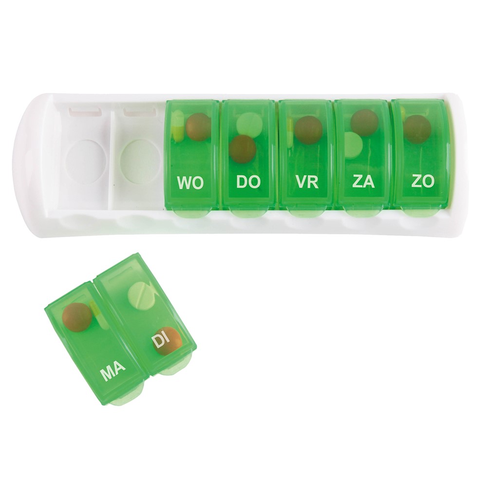 Kuti ilaçesh, Comfort, prej materiali plastik fleksibël. Kutia e lapsit Comfort Aid është projektuar për ruajtje kompakte dhe të rregull të medikamenteve ose vitaminave. Kuti pilule për një javë me 7 ndarje të lëvizshme. Madhësia e kësaj kutie pilule është afërsisht 23 x 7 x 3 cm.
