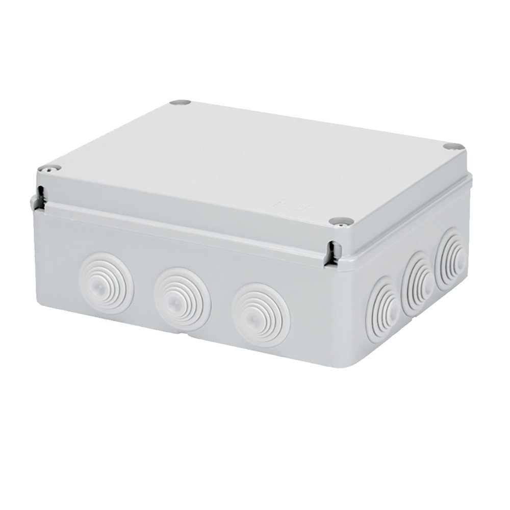 Po vlerësoni:Junction box with plain screwed lid - IP55 - internal dimensions 24x19x9 cm - walls with cable glands - grey ral 7035