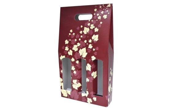 Kuti vere me dorezë e bërë nga material kartoni. Është ideale për t'u përdorur për dhurata. Trashësia e këtij ambalazhi është perfekte për të mbajtur 3 shishe.