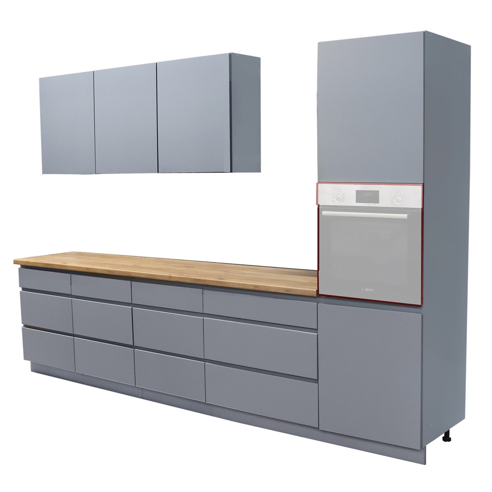 Kjo kuzhinë Campari është e ndërtuar nga materiale cilësore si melamina dhe mdf, me një ngjyrë gri elegante. Gjatësia totale e kësaj kuzhine është 320 cm, duke përfshirë të gjitha komponentët e saj. Ajo ofron një pamje moderne dhe të sofistikuar me ngjyrën gri, dhe është dizajnuar për të plotësuar nevojat e një ambienti funksional të kuzhinës. Përfshin sirtare, dollape, dhe hapësira të mjaftueshme për ruajtjen e enëve të gatimit, ushqimit, dhe pajisjeve të tjera të kuzhinës. Përveç funksionalitetit, kjo kuzhinë ofron një estetikë të stilizuar që do të shtojë një ndikim tërheqës në shtëpinë tuaj.