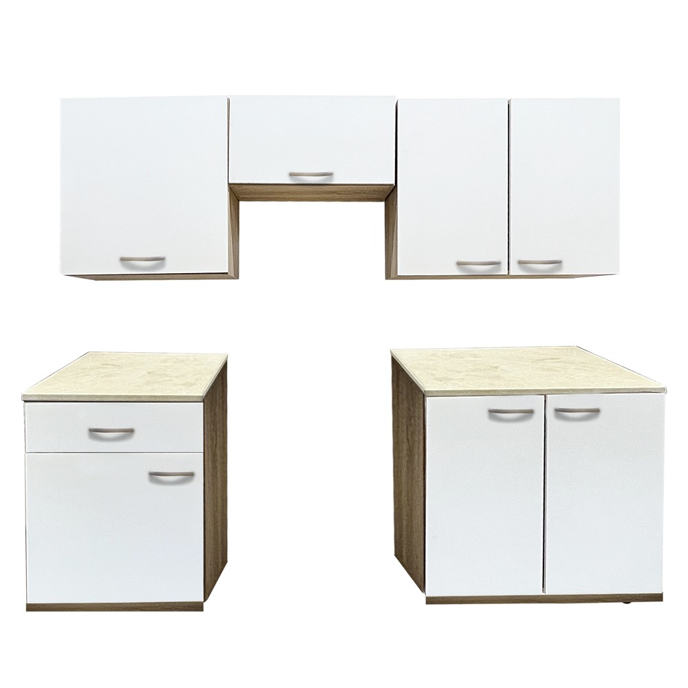 Po vlerësoni:Kuzhinë, Mia, melaminë, sonoma/e bardhë, 140x60xH80 cm; 200x31.6xH60 cm; 60x80 cm