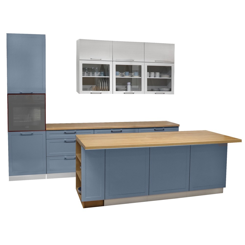 Po vlerësoni:Kuzhinë, Navia, strukturë melamine, mdf, blu, 300 cm; ishull 210 cm