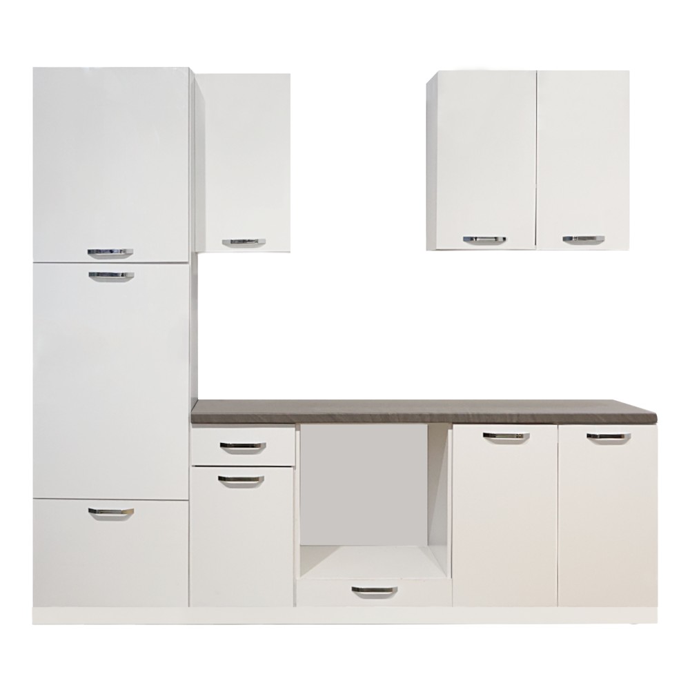 Kuzhinë, Valdy, melaminë/mdf, e bardhë, 180x60xH81.8 cm; 180x31.8xH72 cm; 60x58xH217 cm; 180x60 cm