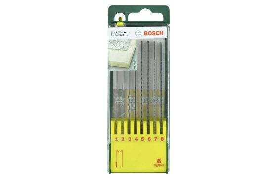Lama sharre sege druri dhe metali 8 pc. Seti perfshin 2 lama sharre per prerej metali nga 1-3mm me gjatesi 67mm. 2 lama standarte per te prere te gjitha llojet e drurit nga 2-15mm me gjatesi 56mm. 2 lama per te prere ne dru te bute nga 5-50mm me gjatesi 74mm. 2 lama druri per prerj te paster na 3-30m me gjatesi 74mm. 2 lama per te prere ne dru te bute nga 4-50mm me gjatesi 74mm