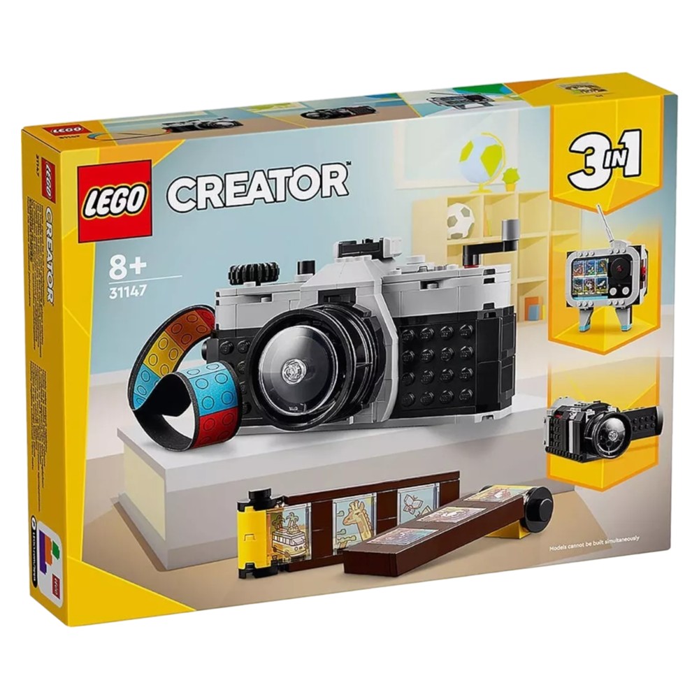 Blloqet Lego janë të bëra prej plastike dhe janë të dizajnuara në një mënyrë të veçantë që të lidhen së bashku në një mënyrë të sigurt dhe të qëndrueshme. Blloqet janë të disponueshëm në një gamë të gjerë ngjyrash dhe forme duke bere qe femijet te humbasin pas ndertimit te tyre. Seti perfshin blloqet per ndertimin e Retro Kamera.