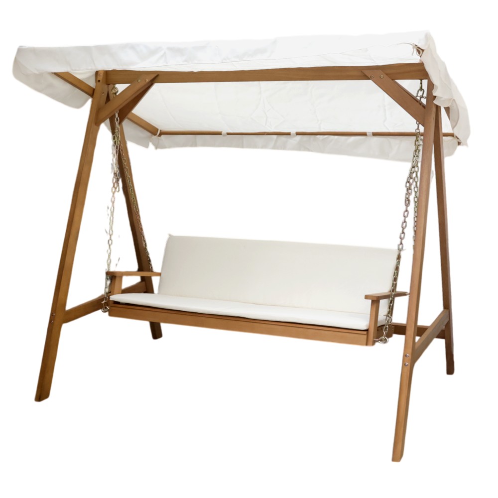 Lëkundëse, dru tropikal Acacia, ngjyre kafe natyrale, shilte e bardhe, 2100x1260x1765 mm