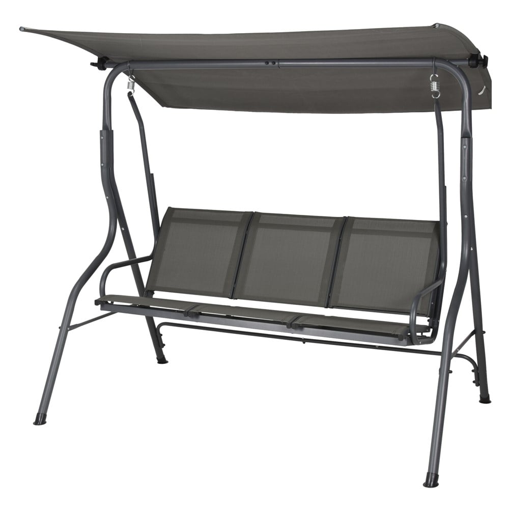 Lëkundëse për 3 presona, metalike/textilen, gri e errët, 167x120xH153 cm