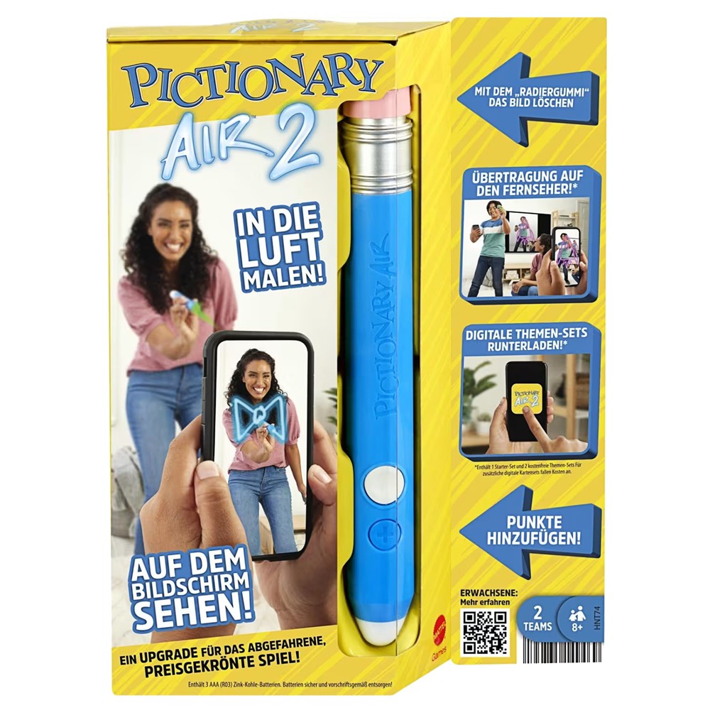 Zbuloni një mënyrë të re dhe emocionuese të lojës klasike të Pictionary me Pictionary Air 2 Drawing Game! E përshtatur për fëmijët mbi 8 vjeç, kjo lojë inovative sjell kreativitetin në një tjetër nivel duke përdorur teknologjinë e realitetit të shtuar (AR). Lëvizni lapsin në ajër dhe shikoni vizatimet tuaja të shfaqen në ekran përmes një aplikacioni. Përjetoni vizatimin në kohë reale në pajisjet tuaja, duke e bërë lojën më interaktive dhe argëtuese. Një mënyrë perfekte për të zhvilluar kreativitetin, komunikimin dhe bashkëpunimin mes miqve dhe familjes.