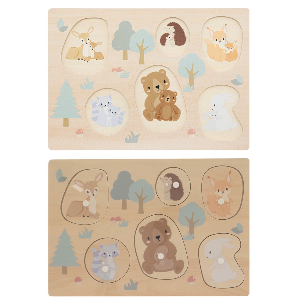 Puzzle prej druri me dizajn kafshësh. Është bërë nga nuanca në bezhë dhe kafe. Ideale që fëmija juaj të kalojë mirë duke mësuar në të njëjtën kohë. Falë kunjave prej druri, fëmijët mund të trajtojnë lehtësisht pjesët e enigmës dhe t'i vendosin pjesët në vendin e duhur. E pershtatshme per moshat 12+ muaj.