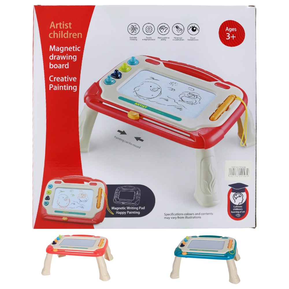 Tavolinë shkrimi magnetike, një mjet kreativ dhe edukativ që kombinon lojën me mësimin. Me dizajn mikse ngjyrash, kjo tavolinë lejon fëmijët të shkruajnë, vizatojnë dhe krijojnë forma duke përdorur magnetët, duke stimuluar kreativitetin, imagjinatën dhe aftësitë motorike.