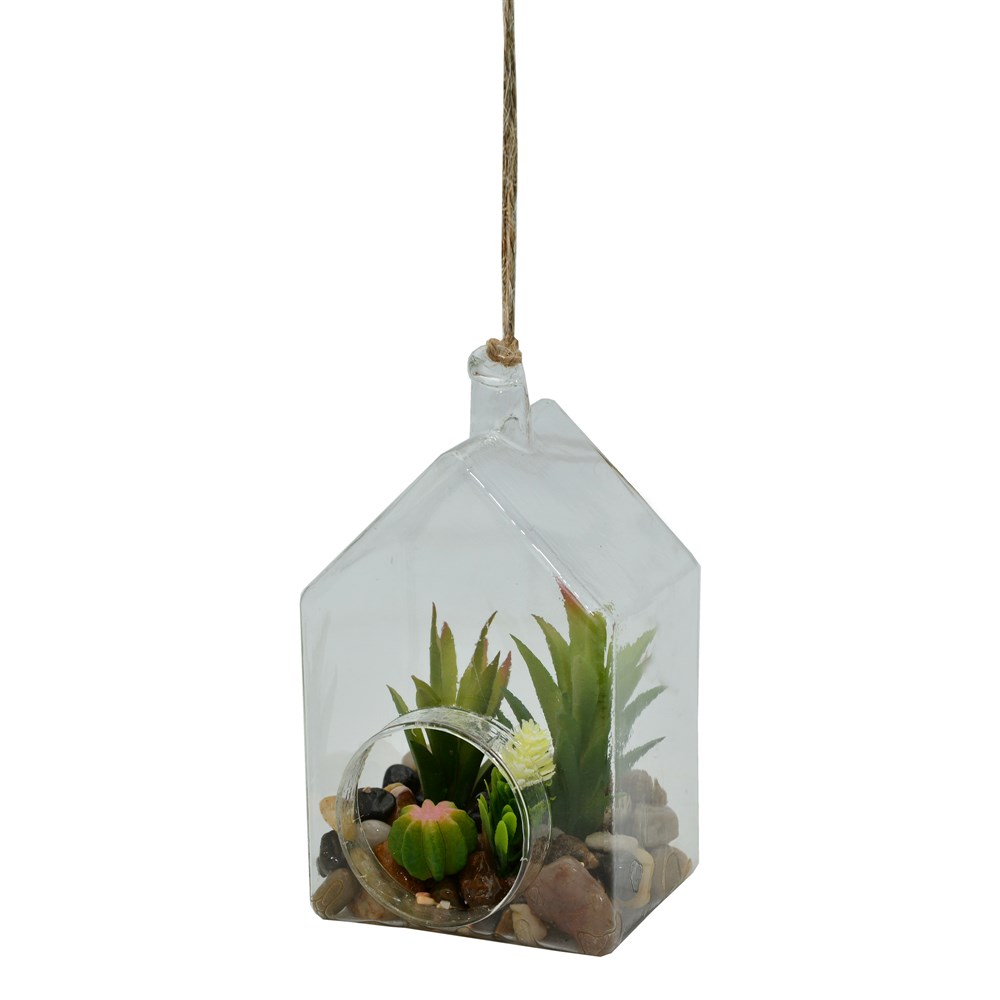 Lule artificiale në vazo qelqi,, plastik, jeshile, 9x8xH14 cm