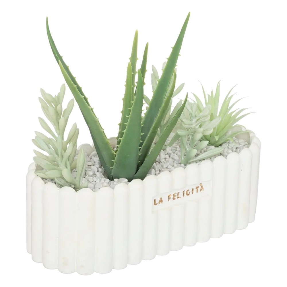Artificial flower, Rivi, in ceramic pot, plastic, green/white, 35x12xH15 cm