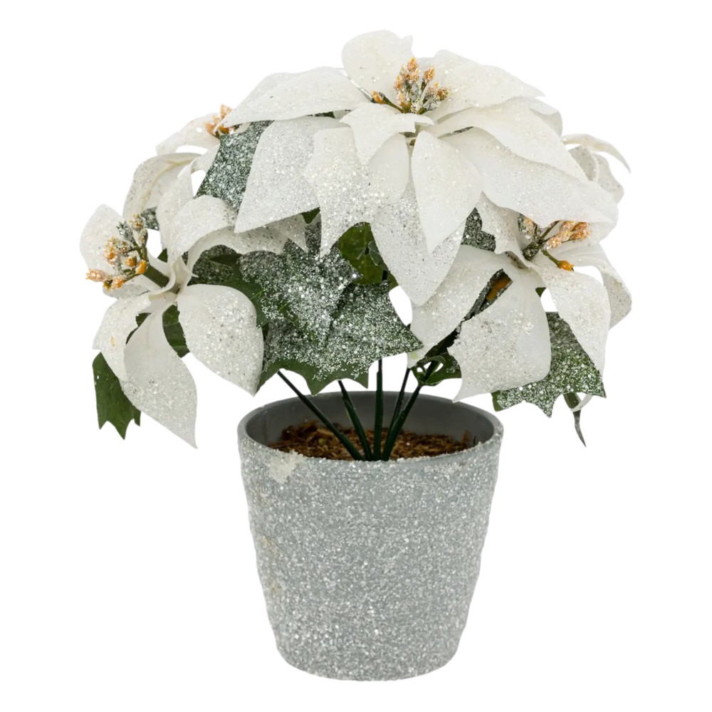 Lule dekorative Christmas, Poinsettita white, ngjyre e bardhe me xixa, H22 cm