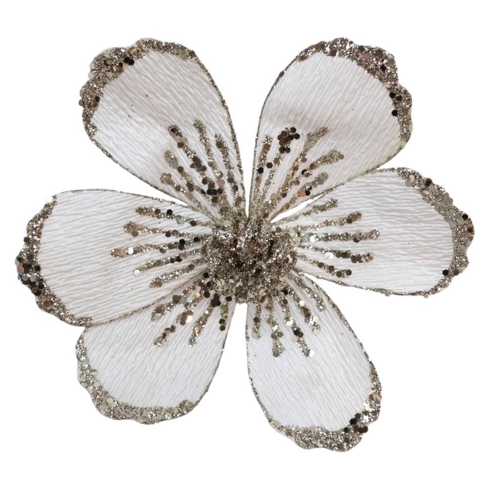 Po vlerësoni:Decorative flower, polyester, white / gold, 22 cm