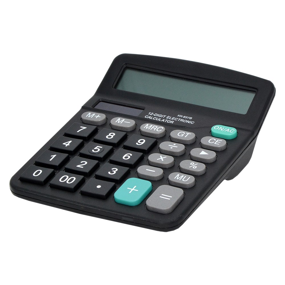 Makinë llogaritëse elektronike, modeli KK-837B, me 6 funksione matematikore, memorie dhe 12 dixhits, e përbërë prej materiali plastik, në ngjyrë gri të errët. Makina llogaritëse ka përmasa kompakte të cilat e bëjnë praktike në përdorim. Ky produkt është i përshtatshëm për përdorim në shkolla, zyra, kancelari, etj.