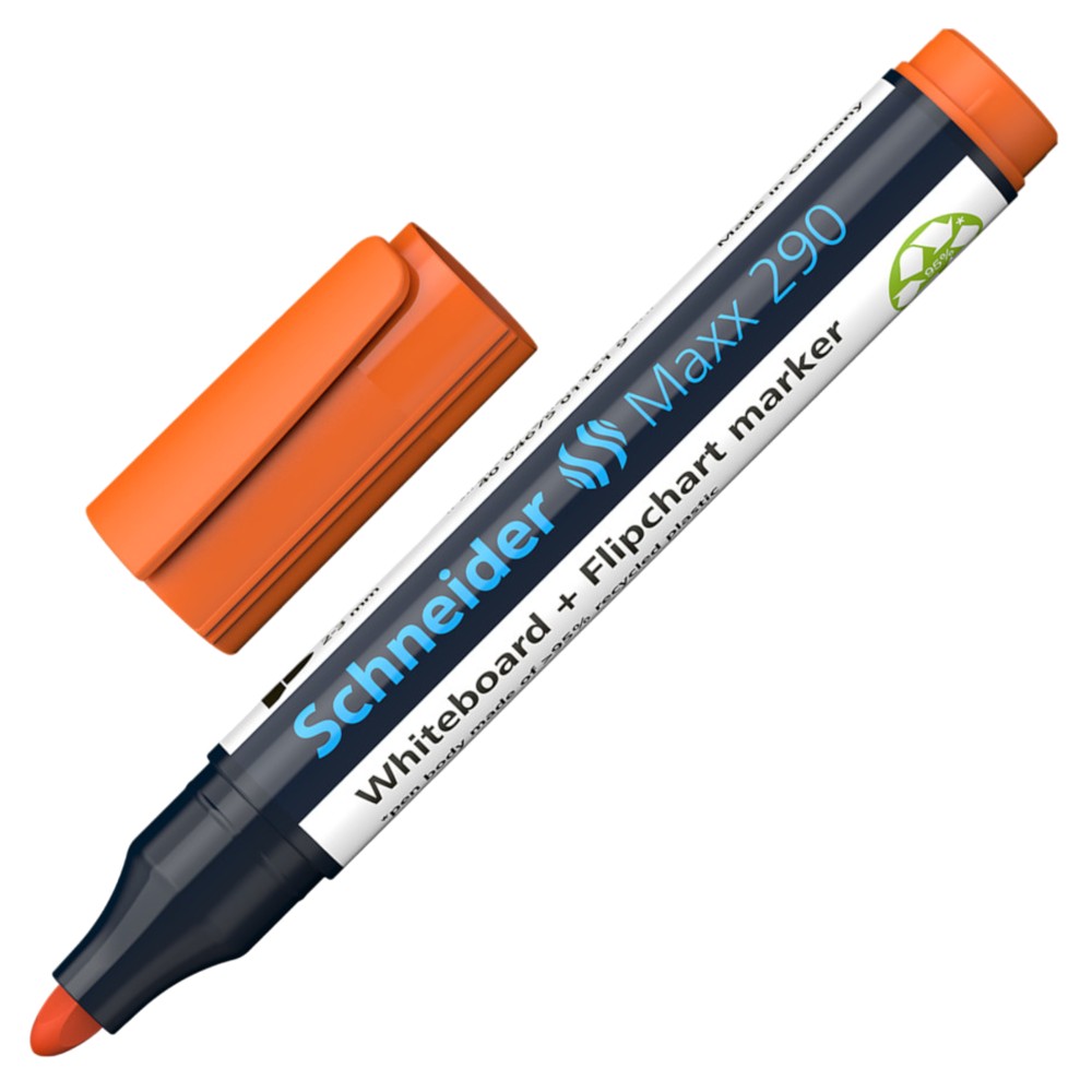 Marker për tabelë të bardhë, gjerësia e vijës 2-3 mm. Ngjyra e shkrimit portokalli. Qoftë në një tabelë të bardhë apo në letër, ngjyrat e forta dhe të gjalla janë të lehta për t'u lexuar edhe nga pjesa e pasme e dhomës. Boja mund të hiqet nga tabelat e bardha me një leckë të thatë pa lënë mbetje dhe nuk do të depërtojë në faqen prapa. Boja me kapak nuk thahet edhe nëse kapaku hiqet për 2-3 ditë. Ka një aromë të ulët dhe nuk përmban toluol dhe xylol.
